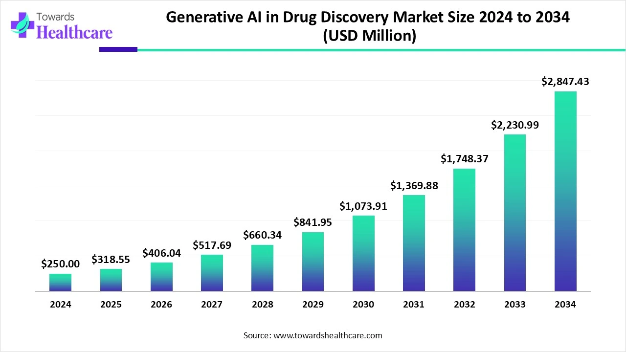 Generative AI in the Drug Discovery Market Size to Attain USD 2847.43 Million, Rising at 27.42% CAGR by 2034